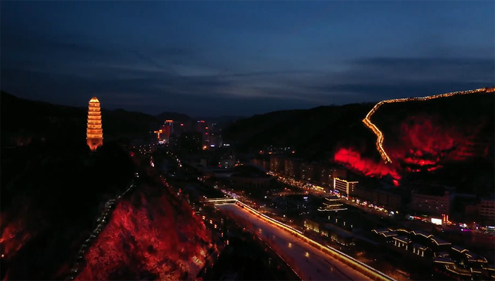 夜幕下的延安。