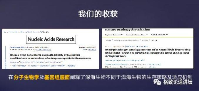 我们目前的这些研究结果说明,在深海生物有着不同于浅海的、非常特别的、为了适应深海的生存策略和适应机制。