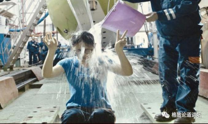 最后,还有一件非常有意思的事跟大家分享一下。就是如果你是第一次下潜,或者是突破以前深度的下潜,那么船上都会举行一个小小的仪式。就是下面大家看到的这样,简单、粗暴。大家可不要以为泼上去的只是清水,其实里边会加上各种各样的“佐料”,比如啤酒、酱油、可乐……你能想到的都可以加进去。我想,这是象征着深潜事业的酸甜苦辣。