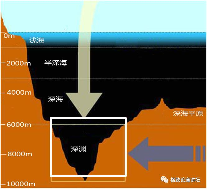 根据深度的不同,我们把海洋分为浅海、深海和深渊。深度大于1000米的海域,定义为深海。深度大于6000米的海域,定义为深渊。