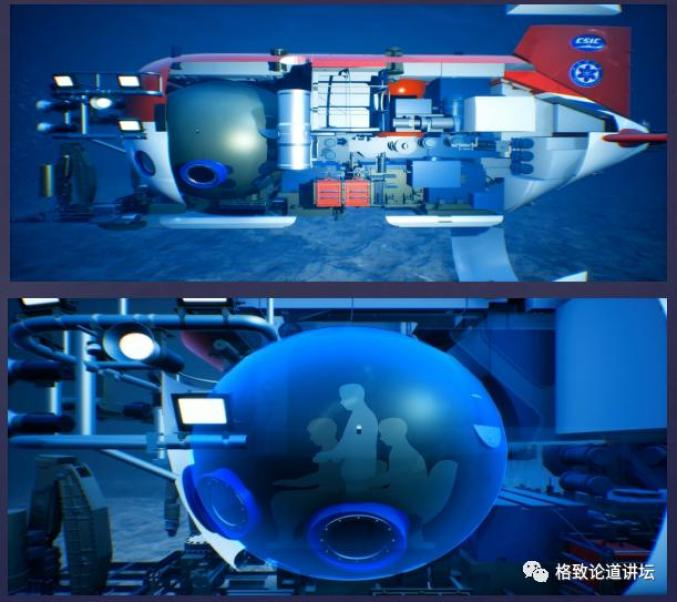 下面,我特别想跟大家分享的是载人球舱。载人球舱是潜水器当中一个非常重要的部分,也是我非常熟悉的,因为我要在里边待上14个小时。