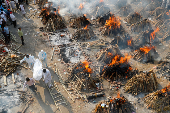4月26日,印度新德里,火葬场大规模火化新冠疫情死难者。