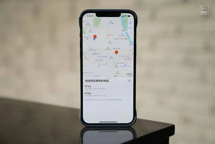 如果你是 iPhone 用户,身上携带了其他人的 AirTag,手机便会收到提醒“检测到 AirTag 在您附近”。