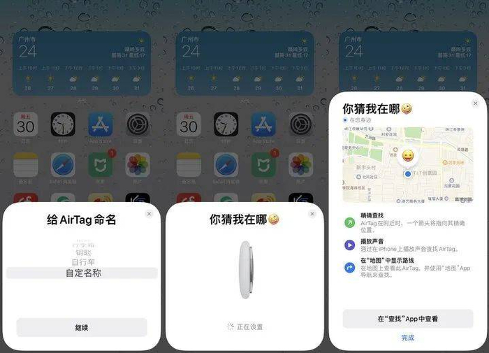 完成上述几步操作大约需要 1 分钟,下面就可以在“查找”app 中,对 AirTag 进行更多操作了。