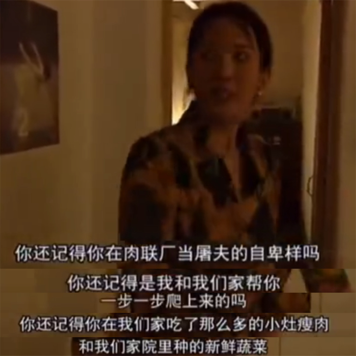 吕丽萍饰演的原配,在某次争吵中字字扎心:“你现在讨厌我了。你还记得你当屠夫的自卑样吗?你还记得我们家的小灶瘦肉带给你多少自尊么?”