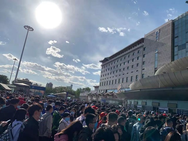 更糟糕的是,地铁站、公交车站、自驾车道不断涌入更多的人,加入这一庞大的进站队伍。天气预报显示,5月1日,北京晴间多云,最高温度23℃,阵风六级。但是多名受访者向第一财经记者回忆,在当天拥挤的人潮和持续的曝晒下,体感不适,燥热难当。