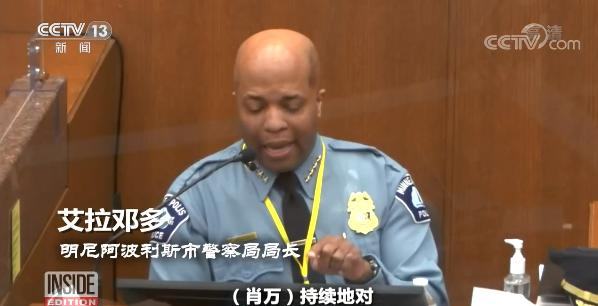 明尼阿波利斯市警察局局长 艾拉邓多:(肖万)持续地对一个被戴上手铐的人使用暴力,这违反了警局的章程,也不是平日训练的要求。