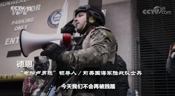 “布加卢男孩”领导人、前美国海军论战队士兵 德恩(Mike Dunn/Boogaloo leader):我们总是被践踏,今天我们不会被再被践踏。我们不是特朗普的人,我们不关心“美国再次伟大”;我们不是民主党的人,不是共和党的人,重要的只有我和我的兄弟们。我们站在这里,我们受够了,我们不会顺从,解决当前问题的唯一答案便是武装起义。
