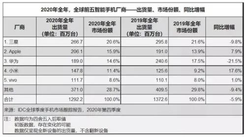 其实是这样的,首先发货量就跟智能手机不是一个级别,像IDC的数据智能手机2020年全球发货12.92亿部,华为发了1.89亿部。
