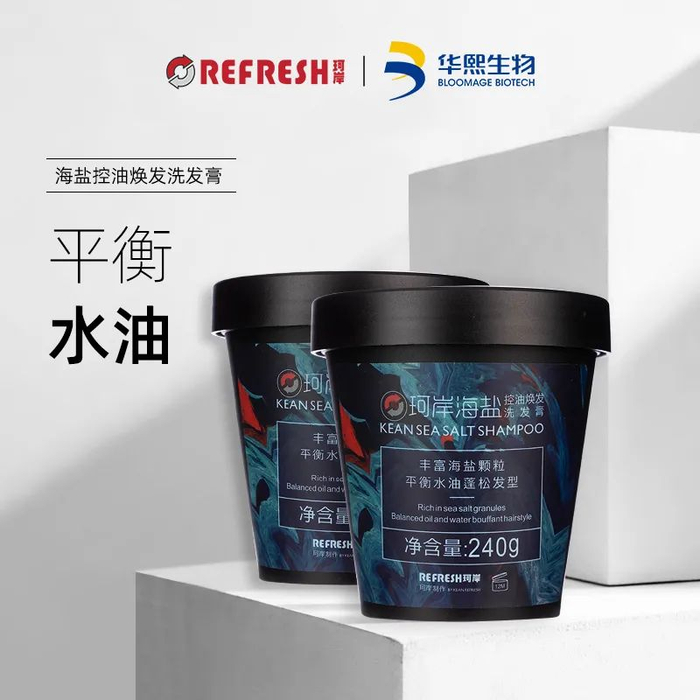 来自地中海的海盐颗粒,清洁头皮,去除老废角质,带走油脂;再用华熙专利的4种透明质酸钠给头皮做深层补水。