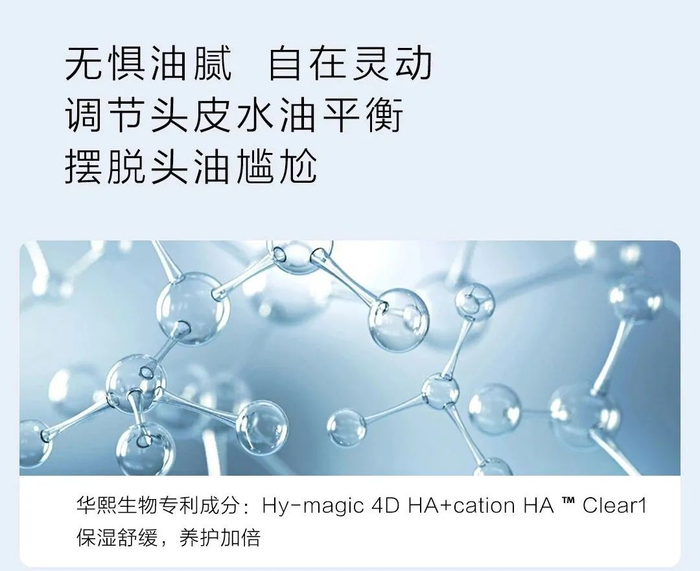 cation HA ™ -Clear1更厉害,是华熙生物近年专为洗护产品开发,被称为“洗不掉的玻尿酸”,提高透明质酸钠在皮肤、头皮上的驻留性,是一种高亲和性的透明质酸。