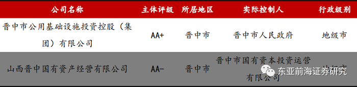 晋中市下辖仅有2家城投平台,均为市级平台,分别为晋中市公用基础设施投资控股(集团)有限公司(以下简称“晋中公投”)与山西晋中国有资产经营有限公司(以下简称“晋中国资”)。