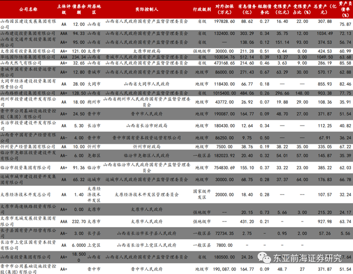 我们将山西省级平台发债主体按其层级关系及职责划分为五大类:山西建投与山西建发为主要的施工建筑平台;山西交投与山西路桥为交通运输主体;华远国际为铁路运输主体;山西文旅与山西投资为文投平台;山西天然气为公用事业平台。