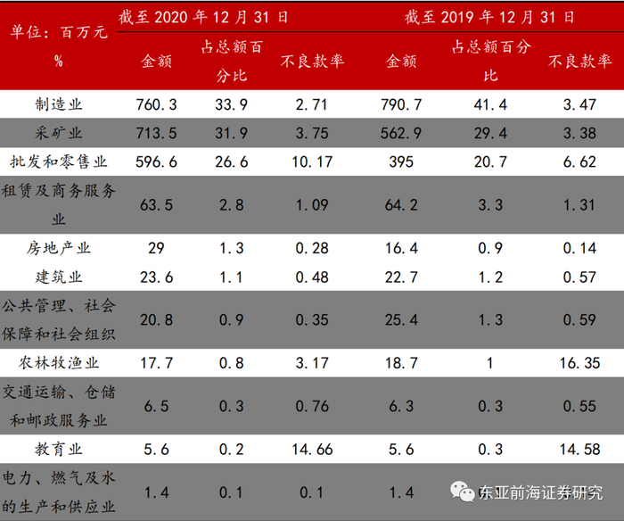 图表12.晋商银行2020年与2019年分行业不良贷款率情况