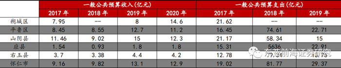 从朔州市下辖区财政收入来看,朔州市辖区一般公共预算收入水平整体偏低,2020年朔城区、怀仁市、山阴县一般公共预算收入相对较高,分别为14.6、12.9和12.3亿元,而右玉县一般公共预算收入仅为1.4亿元。