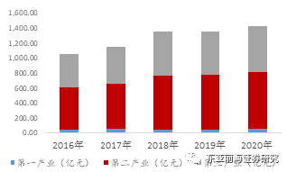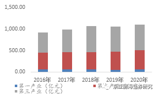 从经济水平来看,晋中市2020年全年GDP为1,468.77亿元,位于山西第六,经济水平为山西省中游水平。从产业分布来看,2019年以来,晋中市第三产业规模逐渐超过第二产业,成为重要产业。2020年第三产业占比达到了46.97%,其中以新能源产业等为主的战略性新兴产业发展较快。
