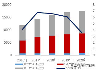 从经济水平来看,大同市2020年GDP水平为1369.9亿元,位于山西省第8位,GDP增速为4.3%。整体来看,2017到2019年经济保持在6%以上的增速水平,2020年受疫情因素影响有所下降。从产业结构来看,大同市以第三产业为主导产业。大同市以同煤集团、大齿集团机械制造公司、山西大唐国际云冈热电有限责任公司为引领企业,形成了能源工业、消费品工业、材料与化学工业、装备制造及其他工业五大行业。