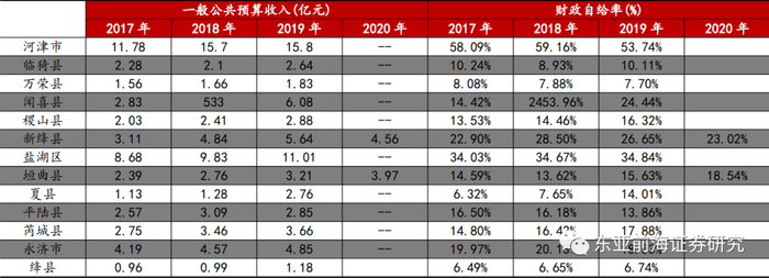 从运城市下辖区财政收入来看,2019年河津市、盐湖区一般公共预算收入相对较高,分别为15.8和11.01亿元。