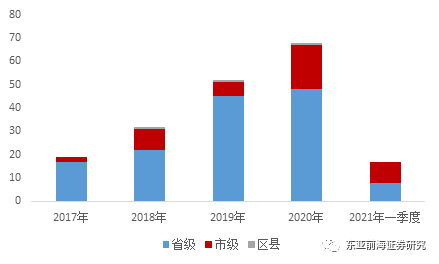 图表21.2017年以来山西城投债发行人行政层级分布情况