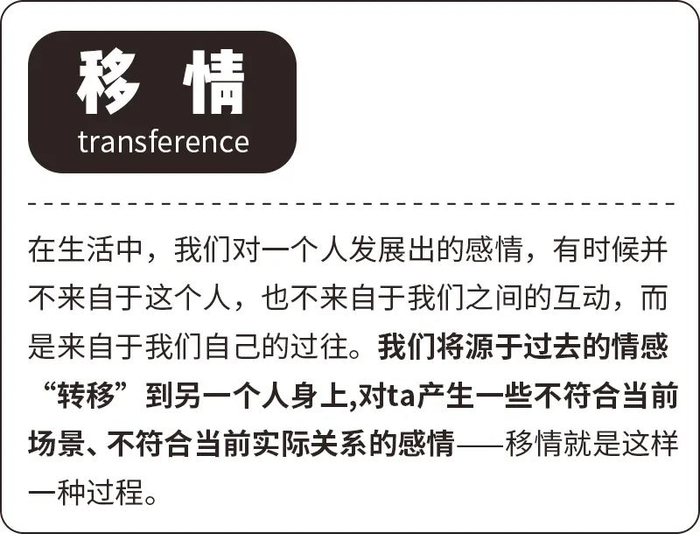 但随着关系的发展,如果一直被移情主导,你可能就会忘记,眼前人不再是旧人,你们之间也不再是当年那段关系。最终,你可能会“误伤”对方,为关系中的双方带来压力。
