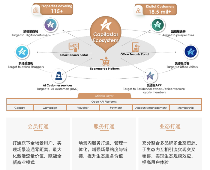 面对数字化对整个社会和各个行业的颠覆性变革持续深入,从2015开始主动拥抱变化并进行数字化转型的凯德,从C端用户切入,逐步进展到B端合作伙伴与E端员工的生态共创,以数字化为手段的生态之力赋能资产增值,协助合作伙伴共赢。