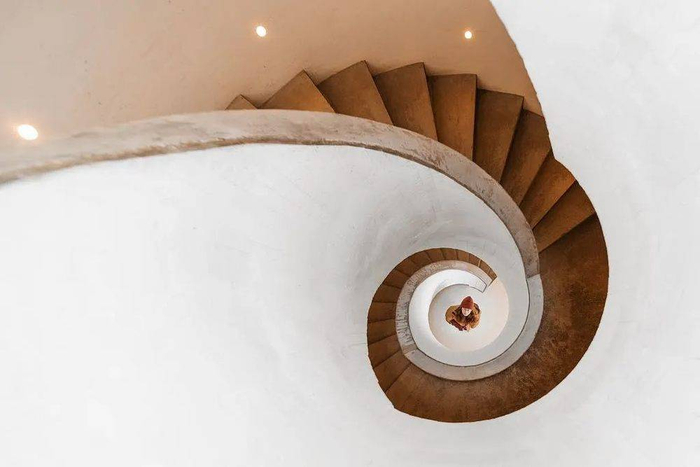 2019年12月31日,河北秦皇岛,沙丘美术馆内的旋梯