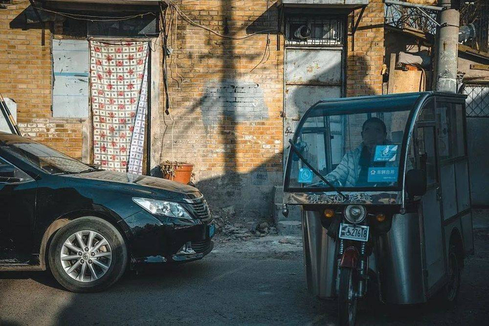 2019年3月15日,北京,汽车和破旧的代步车,在胡同里并存