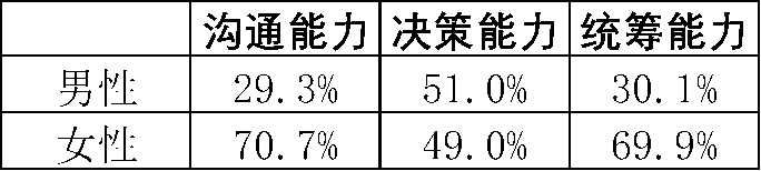 通过对角色期待,即3种关键能力(沟通、决策、统筹)的分析发现,在沟通能力和统筹能力上,女性明显强于男性;在决策能力上,男女差异不大。据此可以判断,学生组织骨干成员所需能力具有性别差异。
