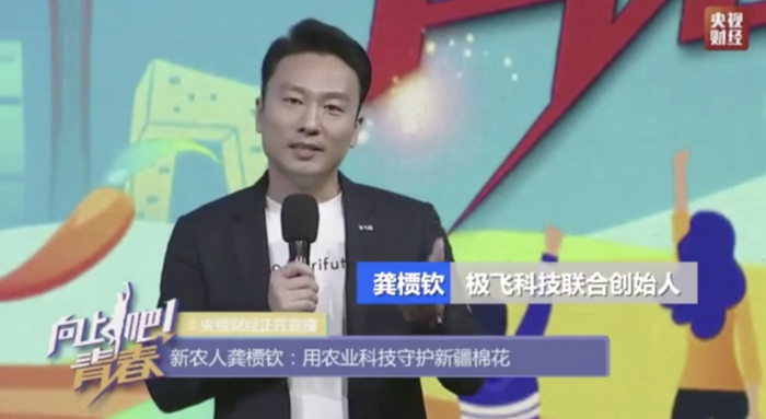 在央视财经“向上吧!青春”五四论坛的现场,极飞科技联合创始人龚槚钦带来了一台翼长约3米长的极光最小的“农业无人机”,这台机器能携带20公斤农药。据龚槚钦介绍,新疆的农田面积占全国80%以上,其中运用了“农业无人机”进行播种收割的面积达70%以上。