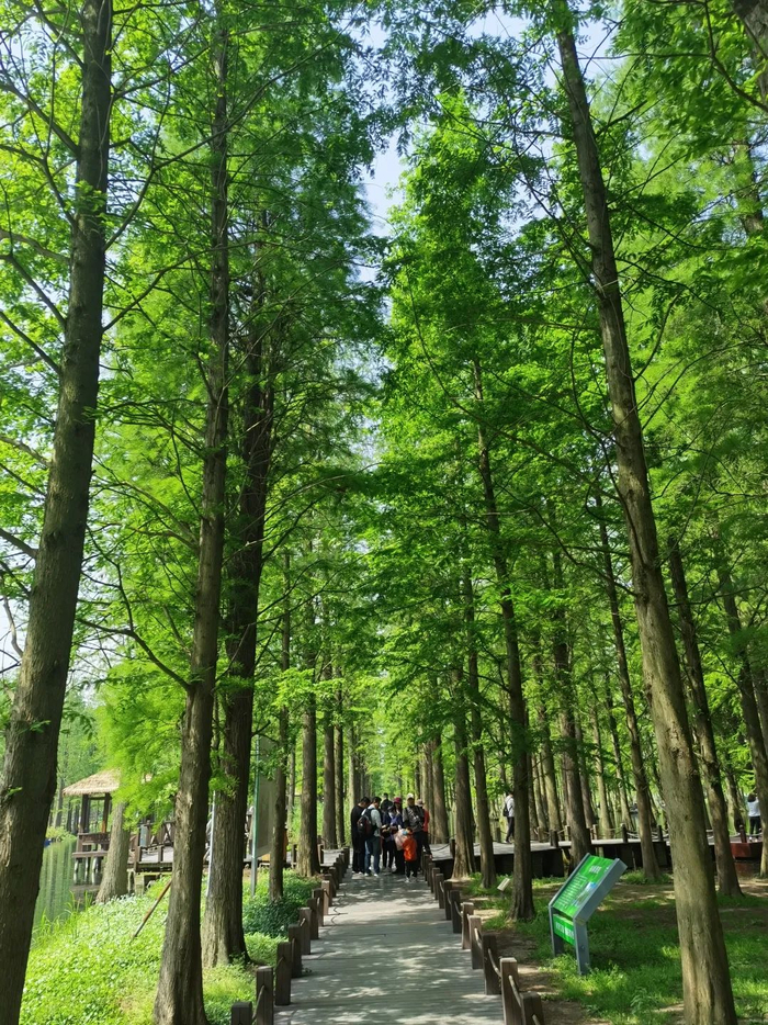 青西郊野公园环绕着大莲湖湿地而建,突出“以林为体,以野为魂,以水为韵”的建设特色,“湖、滩、荡、岛”、碧波荡漾、杉林鹭影,令人啧啧称奇。