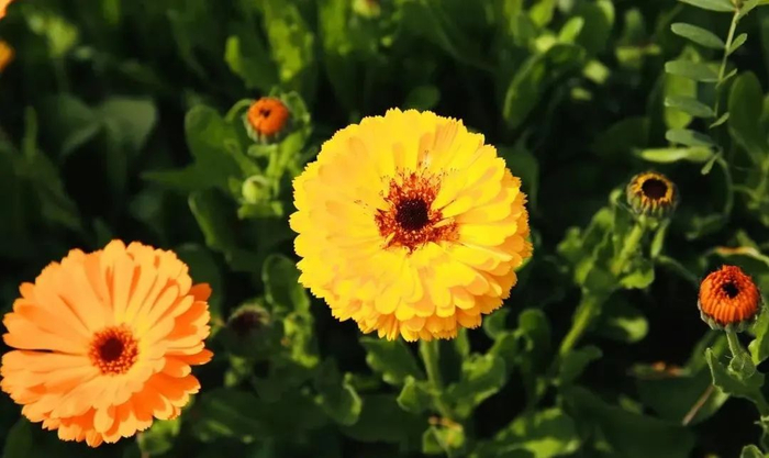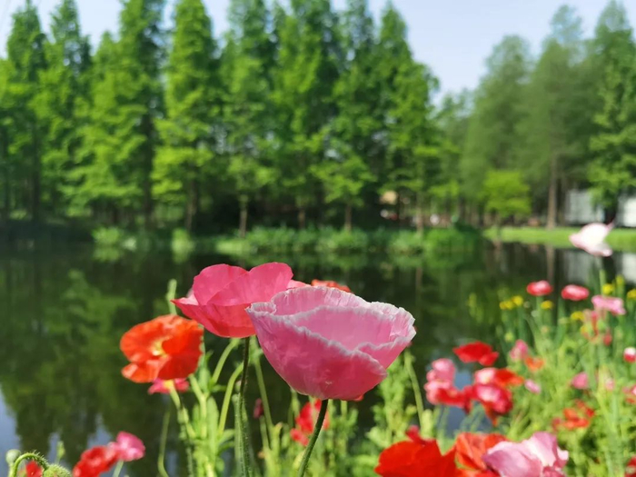 虞美人、金盏菊、大滨菊争奇斗艳