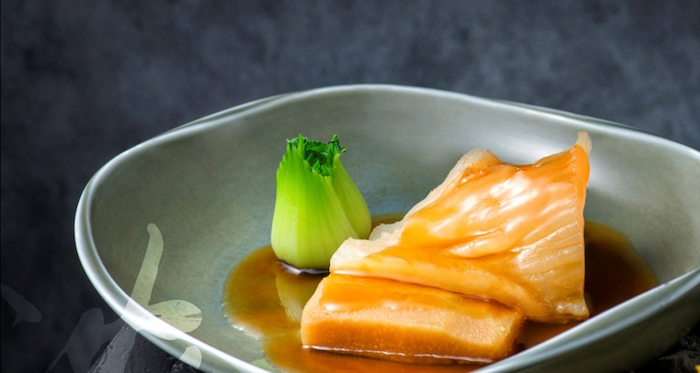 浓汤煨制后柚子皮和花胶淋上鲍汁芡,“鲍汁柚皮扣花胶”每一口都显得无比软糯香“浓”。