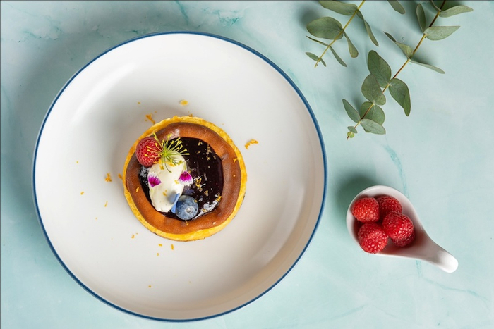 主厨将这款细腻绵润的西班牙小众芝士蛋糕搬上餐桌,微焦的表面闪耀着蛋奶光泽。浓郁纯正的奶酪搭配特制糖渍蓝莓,散发清甜果香,平衡丰富味蕾。切开后软糯的芝士流心更是让人食指大动,入口芝香诱人,甜而不腻。这道满具特色且饱含惊喜的甜点,为这场地中海寻味之旅划上完整的句号。JW万豪酒店通过美食、体验活动开启自然焕活之旅