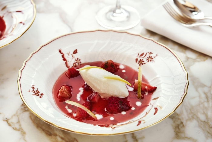 草莓冷汤配酸奶冰淇淋