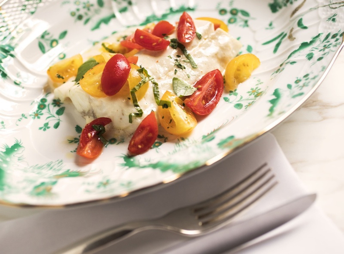 烤海鲈鱼配番茄,香蒜及欧芹