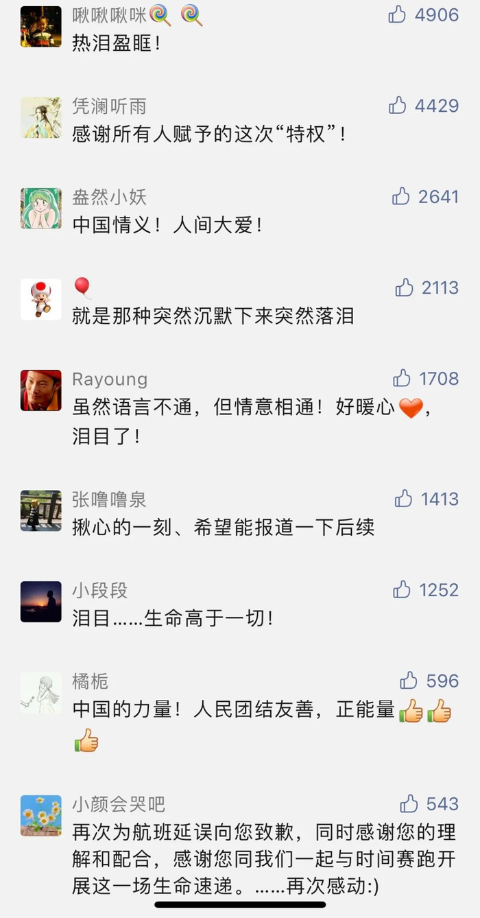 网友纷纷向暖心的南航机组人员与乘客点赞