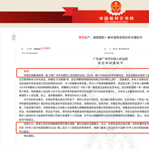 富凯IPO财经通过中国裁判文书网查询案号“(2019)粤01刑申24号”显示,“李淙:你因犯销售假药罪一案,不服广州市花都区人民法院作出的(2016)粤0114刑初369号刑事判决,你及你委托的辩护人提出以下申诉意见和理由向本院申诉”。