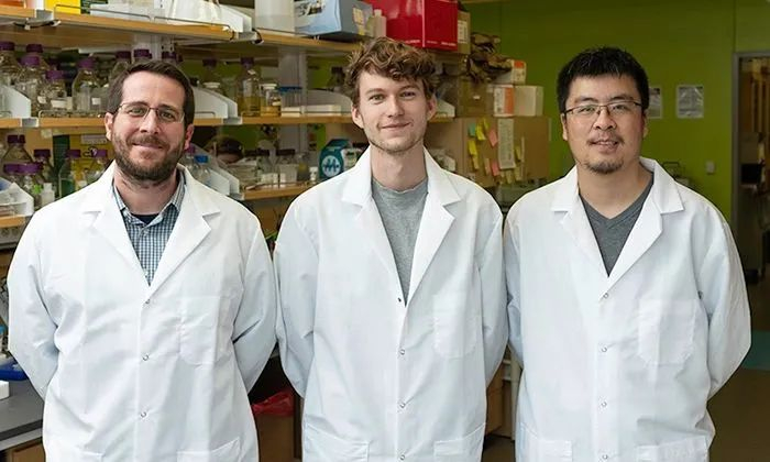 左起:分子生物科学副教授Jason S. McLellan,研究生Daniel Wrapp和研究助理Nianshuang Wang于2020年2月17日星期一在德克萨斯大学奥斯汀分校的McLellan实验室合影。