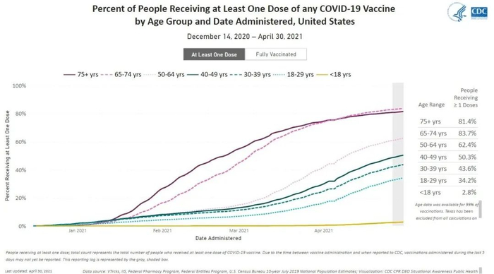 4月28日,CDC报告:完全免疫后,65岁以上老人的住院率降低了 94%。[4]