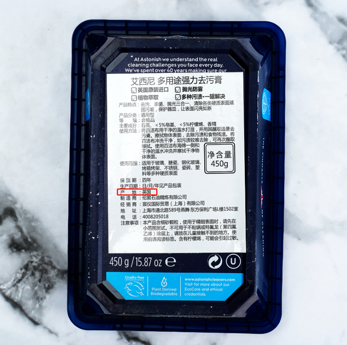 为了保证品质,目前全世界销售的Astonish产品都是英国原产的。