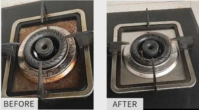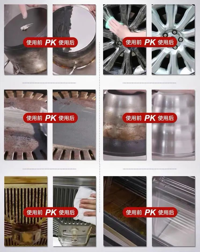 用清洁膏一擦,油垢瞬间脱落溶解,不用很费力就能擦干净。