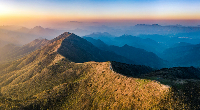 搁船尖壮观的山脊线,露营地就位于山脊上,右下角为搁船尖山顶。