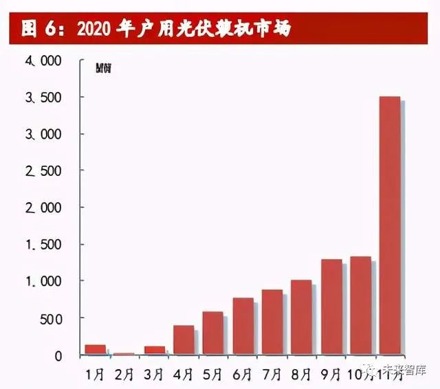 户用市场发展迅猛,全年并网规模可观。户用市场近年来发展迅速,历年装机量 屡创新高,光伏户用项目因其低成本高收益的特性进入千家万户,成为光伏应用 重要场景。2020 年光伏新政中,户用光伏补贴总额为 5 亿元,占总补贴比例从 2019 年的 25%提升至 33.3%,2020 年户用光伏项目实际装机规模达 10.12GW,再 创历年装机新高。
