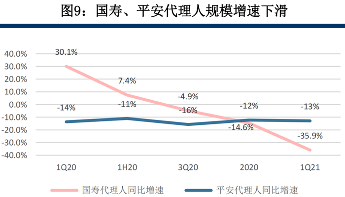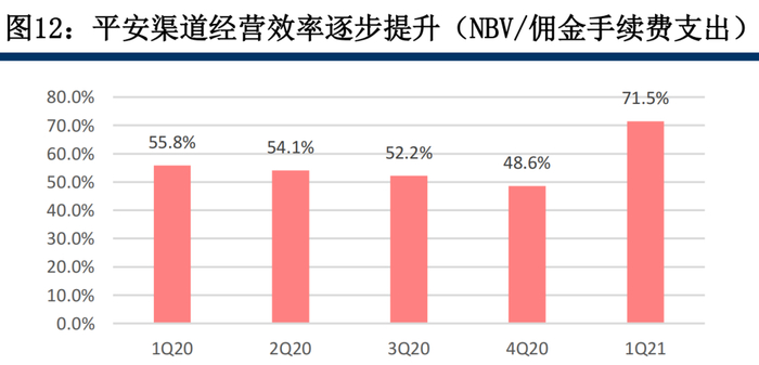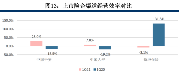 据此推测:1Q21 渠道经营效率改善幅度,平安最高,国寿、太保边际提升,新华有所下降。