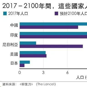 柳叶刀研究预测2017-2100年间,这些国家人口变化