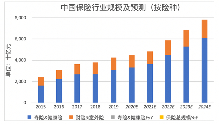 首先,中国的保险行业整体规模正处在快速上升期。