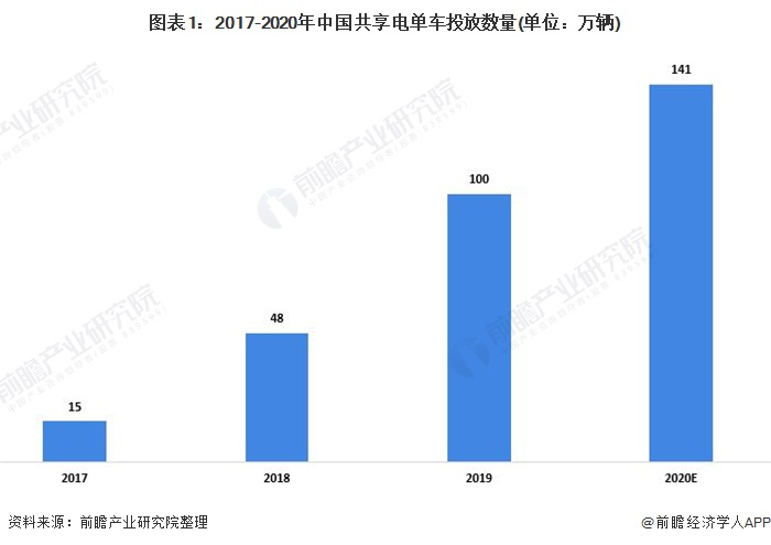 随着中国人民对于共享电单车的接受程度提高,对于共享电单车的需求提升。单车作为市民短途出行最经济的交通工具,城市交通系统中重要的组成部分之一。2019年中国共享电单车数量达到100万辆,2020年数量约为141万辆。