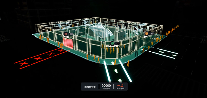 五一假期期间的大客流应对便是典型一例。在黄浦区城运中心大厅的大屏上,一个个城市运行的数据飞快滚动,当步行街客流达到中高风险等级时,区城运中心会立即发布大客流预警,通过区城运平台自上而下向南京大楼“数字孪生”系统发送配套处置通知。