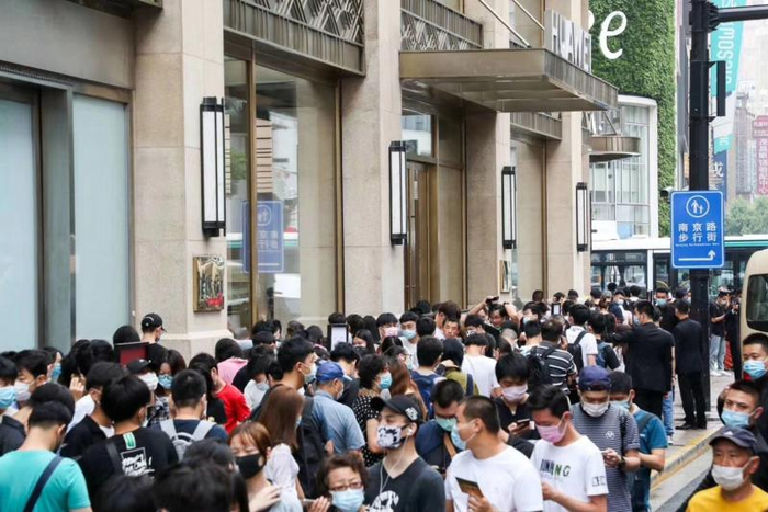五一小长假期间的上海热闹非凡,旅游地标之一的南京路步行街更是游人如织、熙熙攘攘。