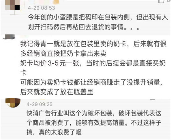 有多次打投经验的粉丝讨论,将二维码放在瓶盖上是品牌方经过多番考虑之后所做的最佳选择